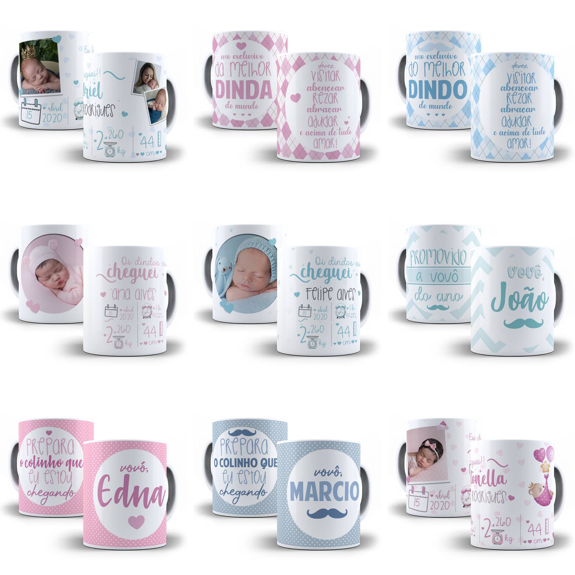 10 Artes Caneca Dindos e Nascimentos Editável em Photoshop + Png