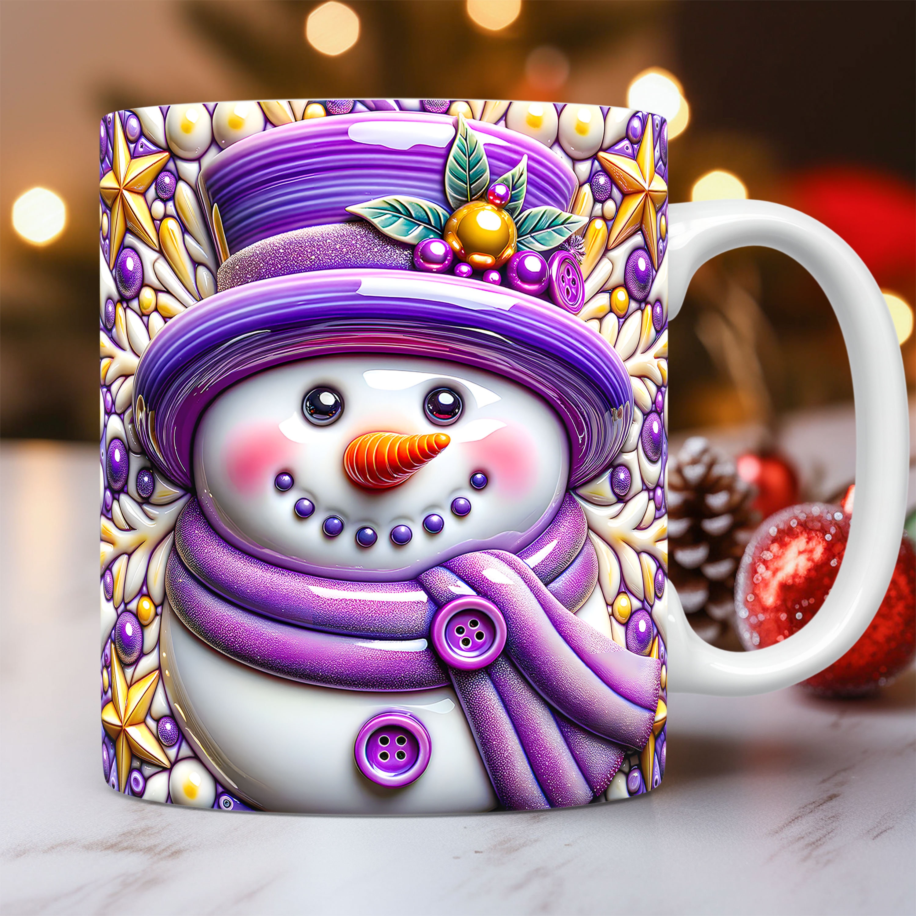 Arte Caneca Boneco de Neve 3D Lilás Arquivo Png