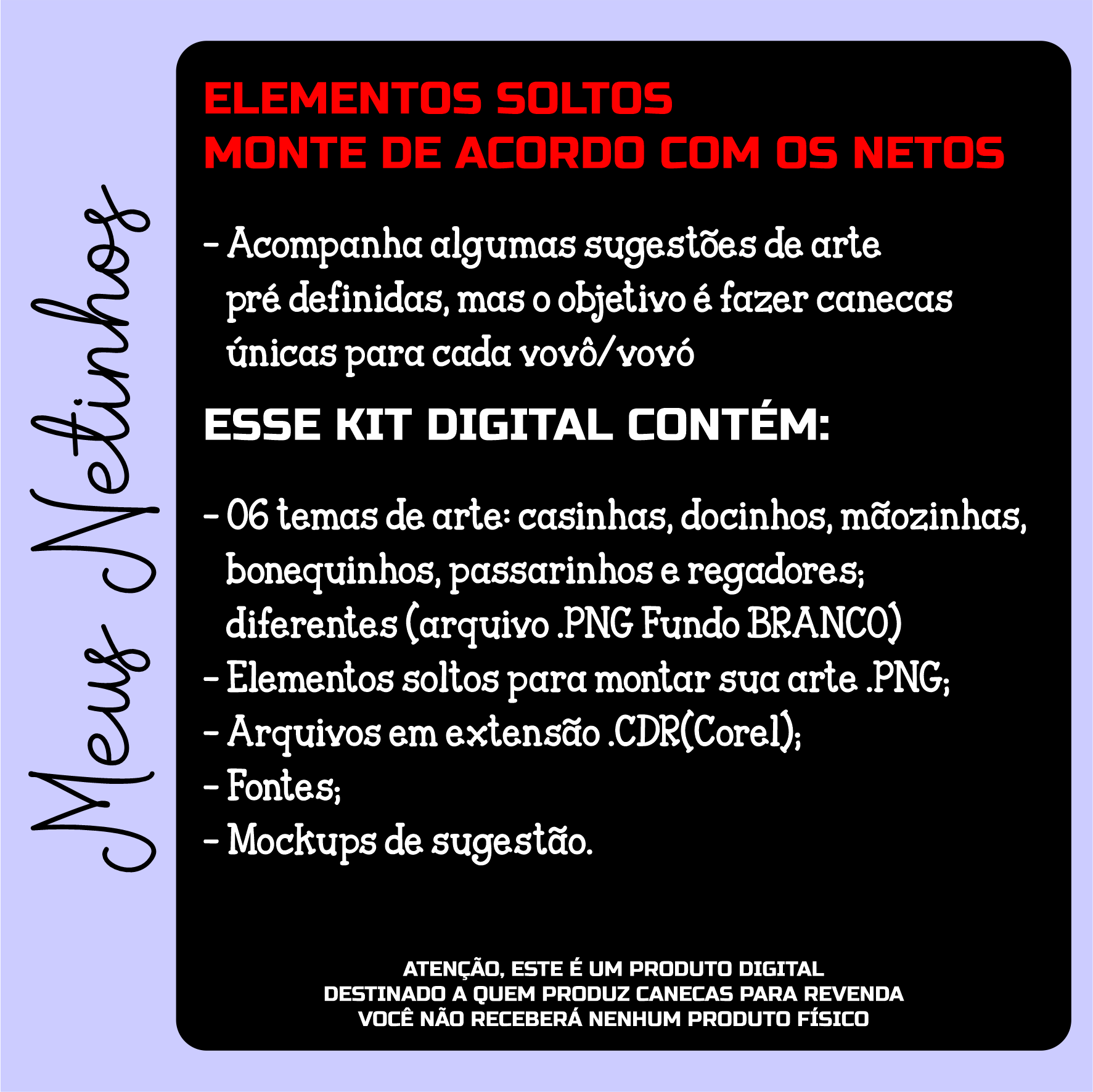 Artes para Caneca Dia dos Avós Meus Netinhos em Linhas Arquivo Png