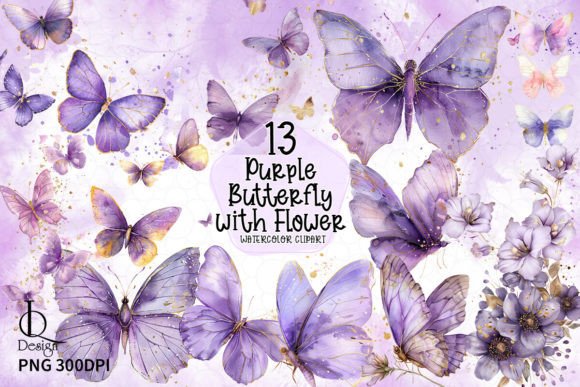 Kit Digital Borboleta Lilás Aquarela em Png