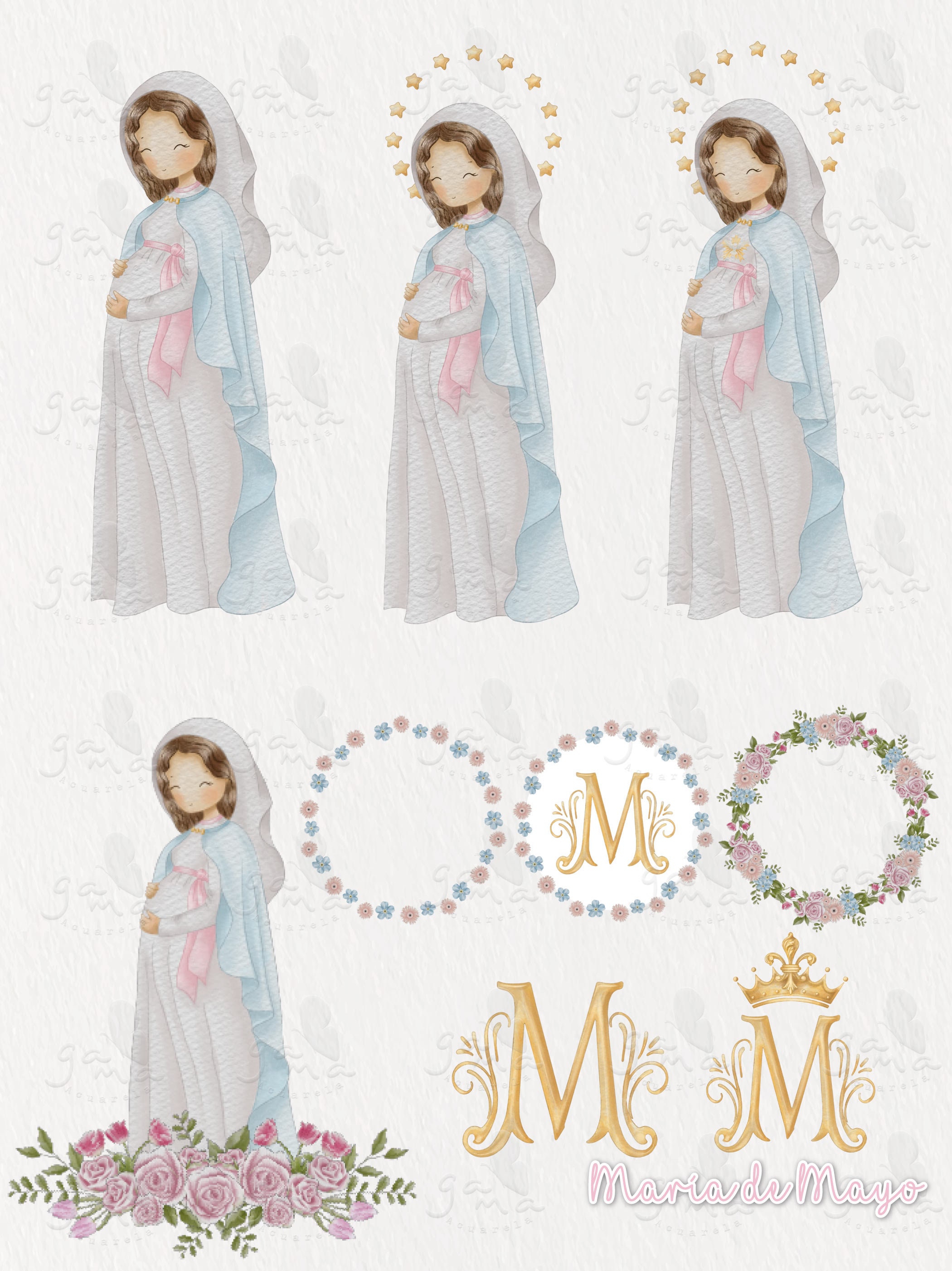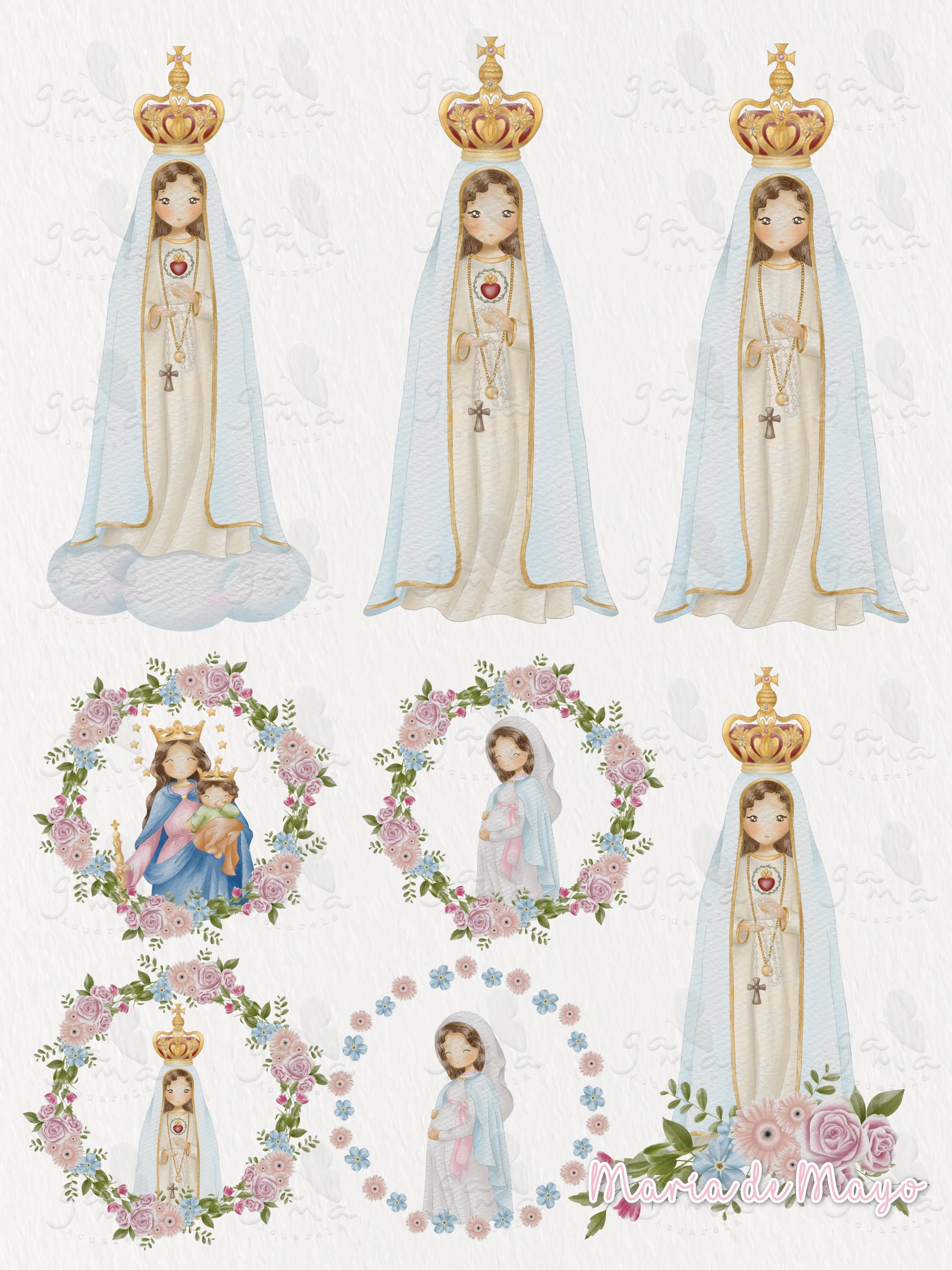Kit Digital Virgem Maria, Fátima Maria Auxiliadora em Png