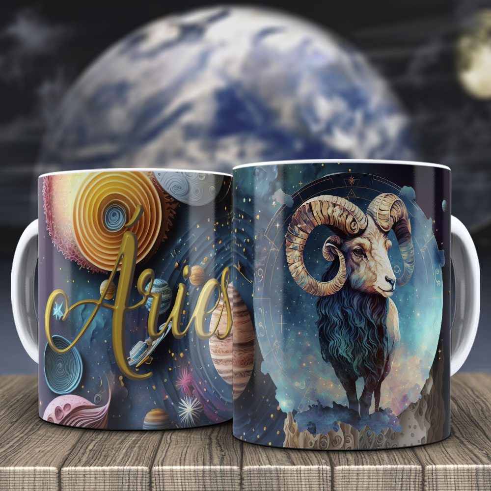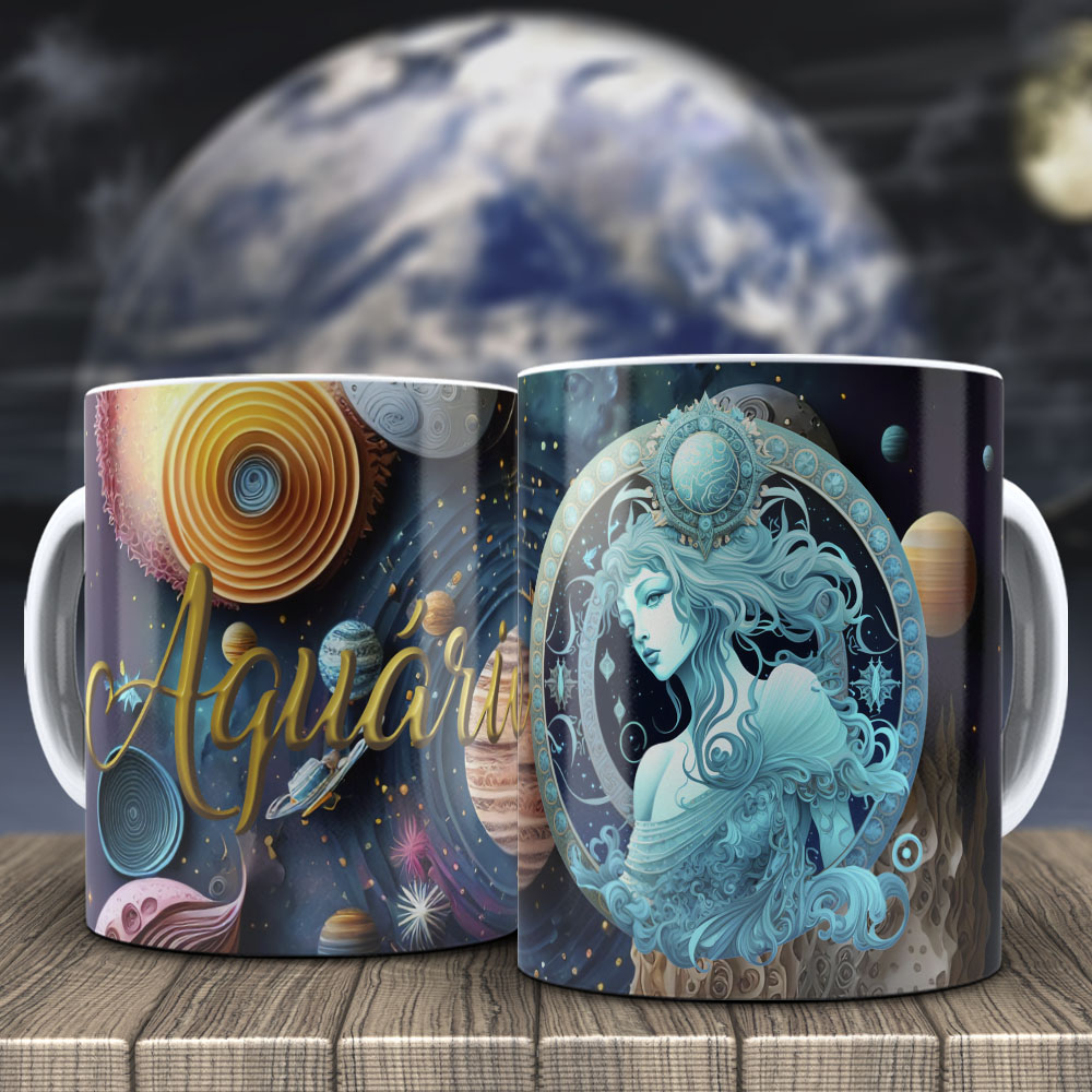 12 Artes para Caneca Signos 3d Arquivo Editável
