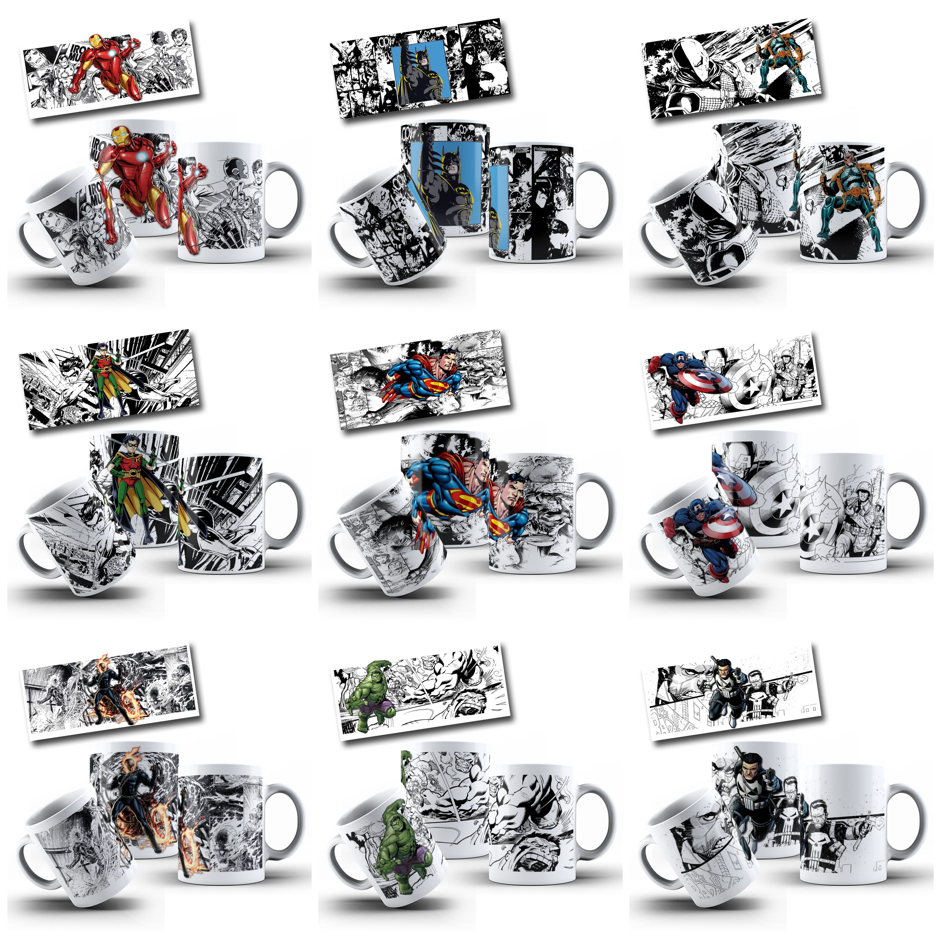 22 Artes para Caneca Super Herois Filmes Arquivo Editável