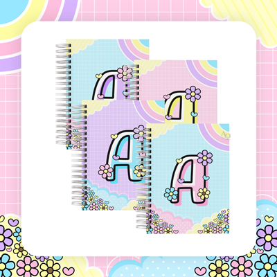 - Artes de capas tamanho A5 prontas com todas as letras do alfabeto floridas