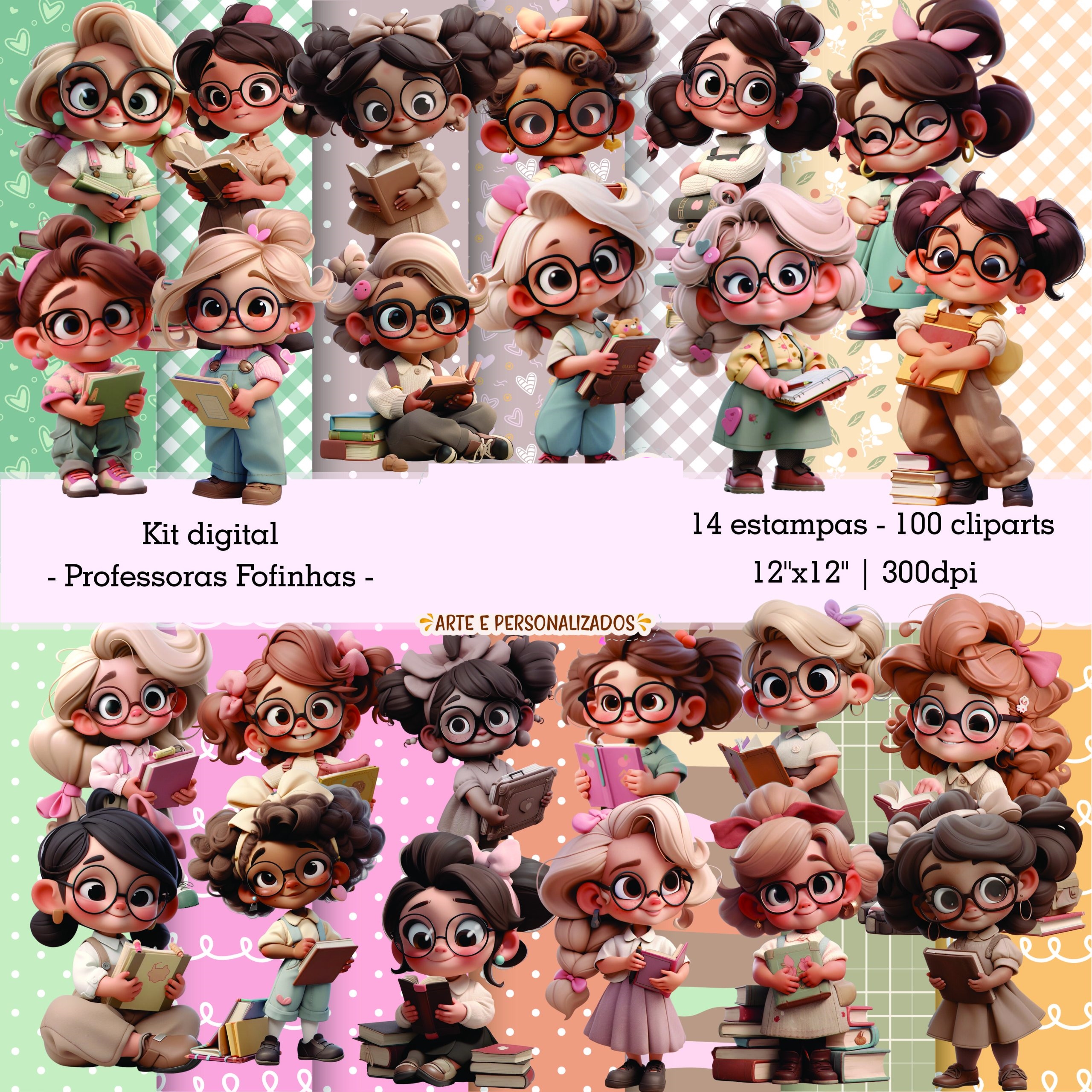 Kit Digital Mascotinhas Professoras Fofinhas 3D em Png