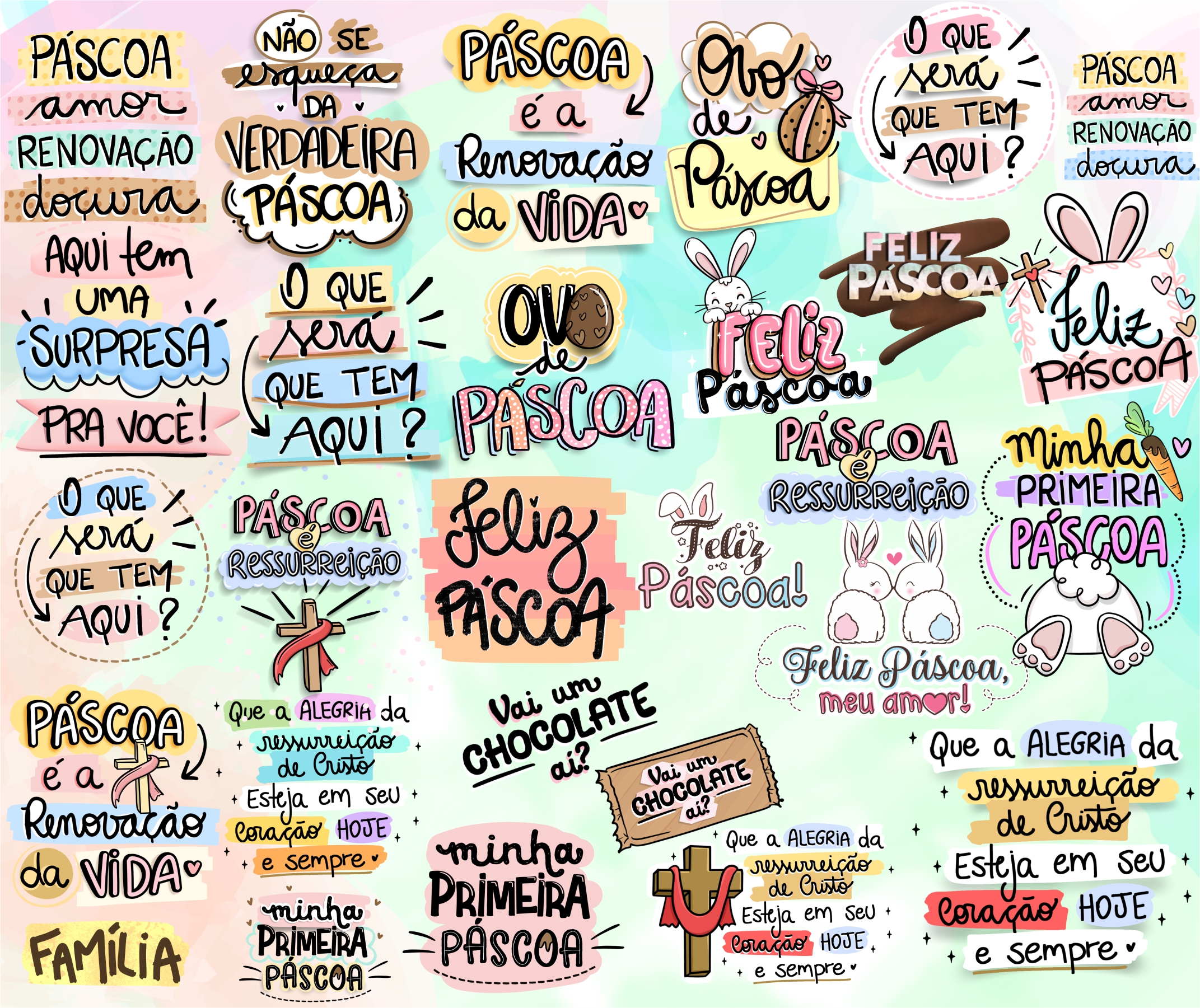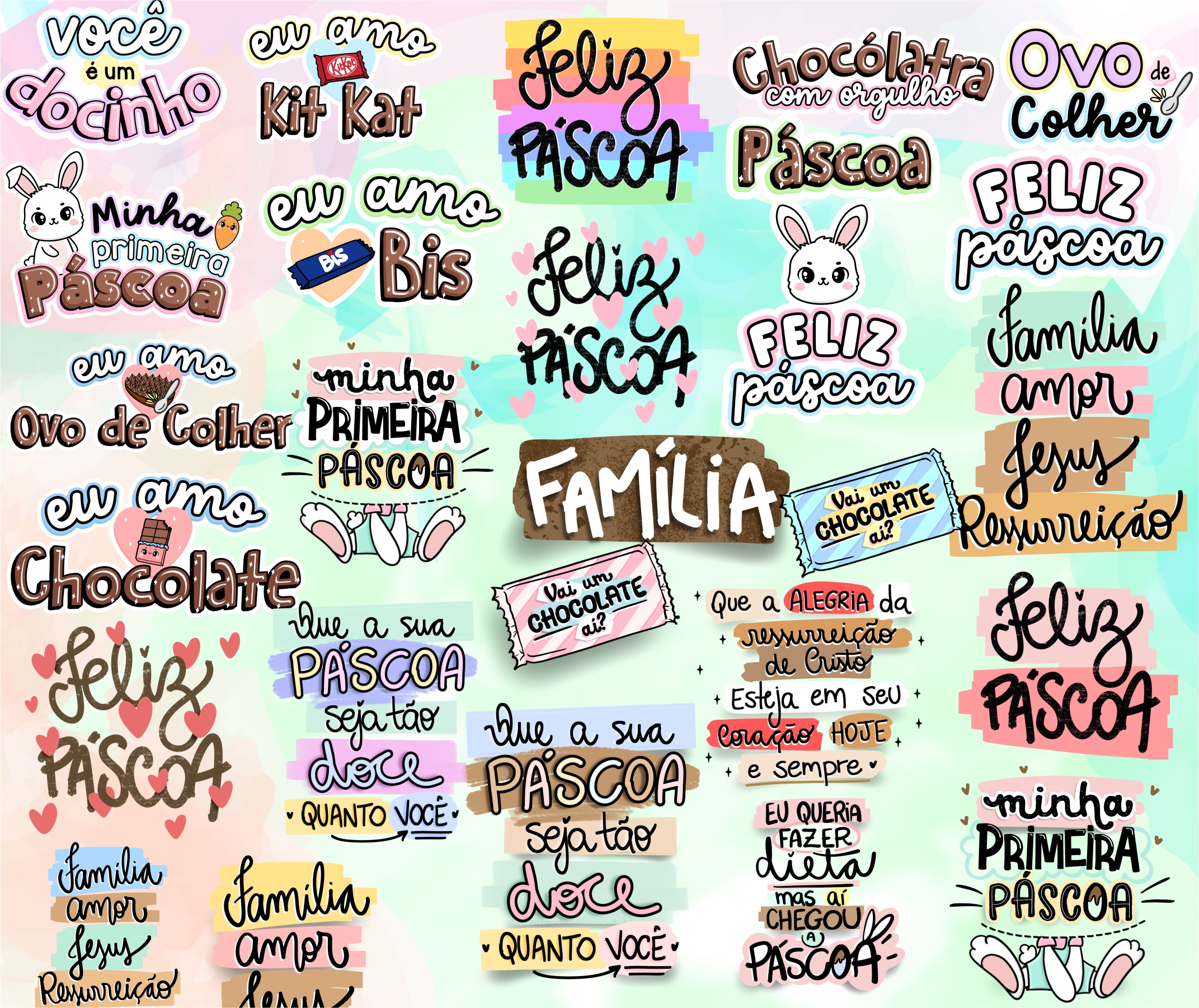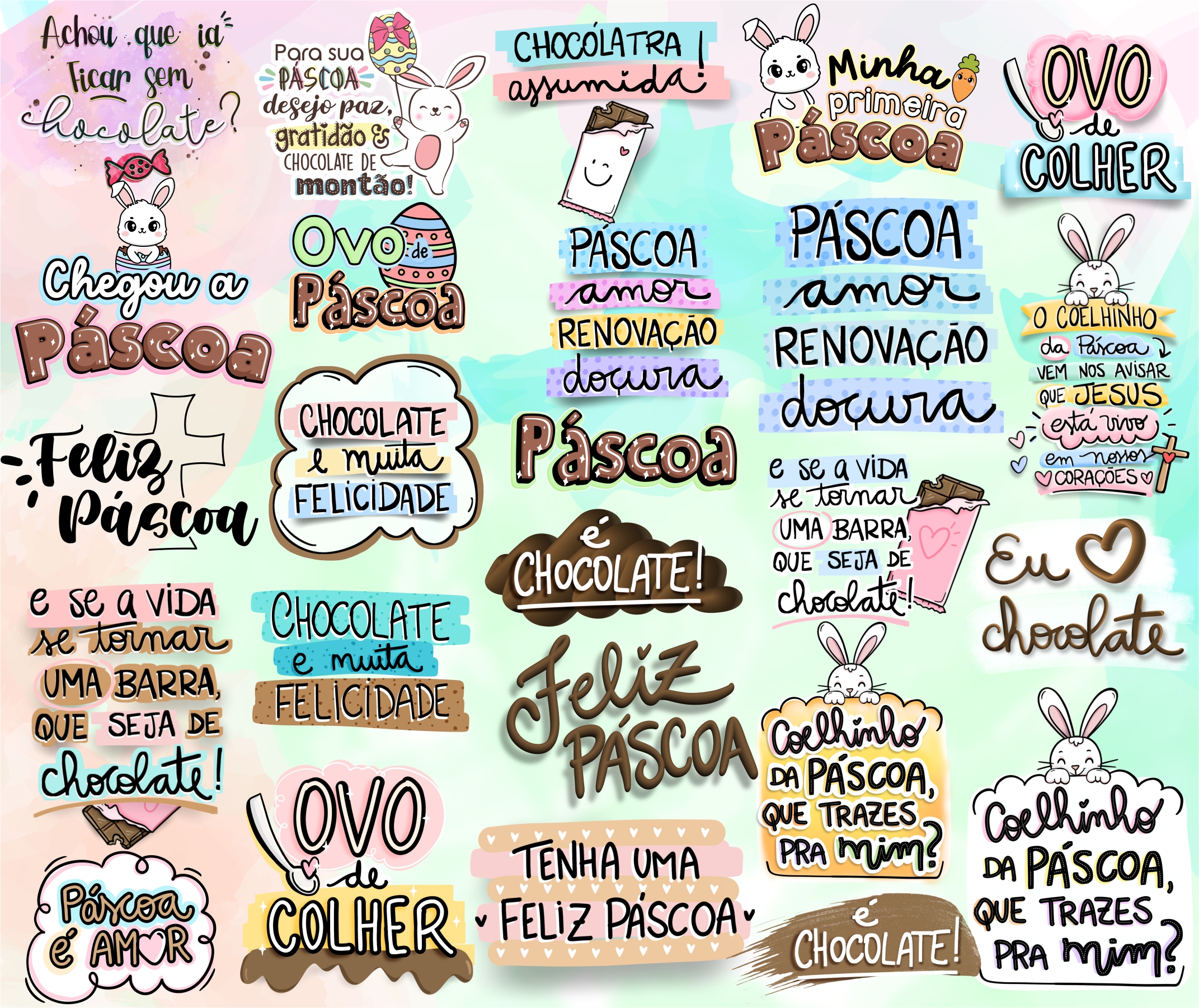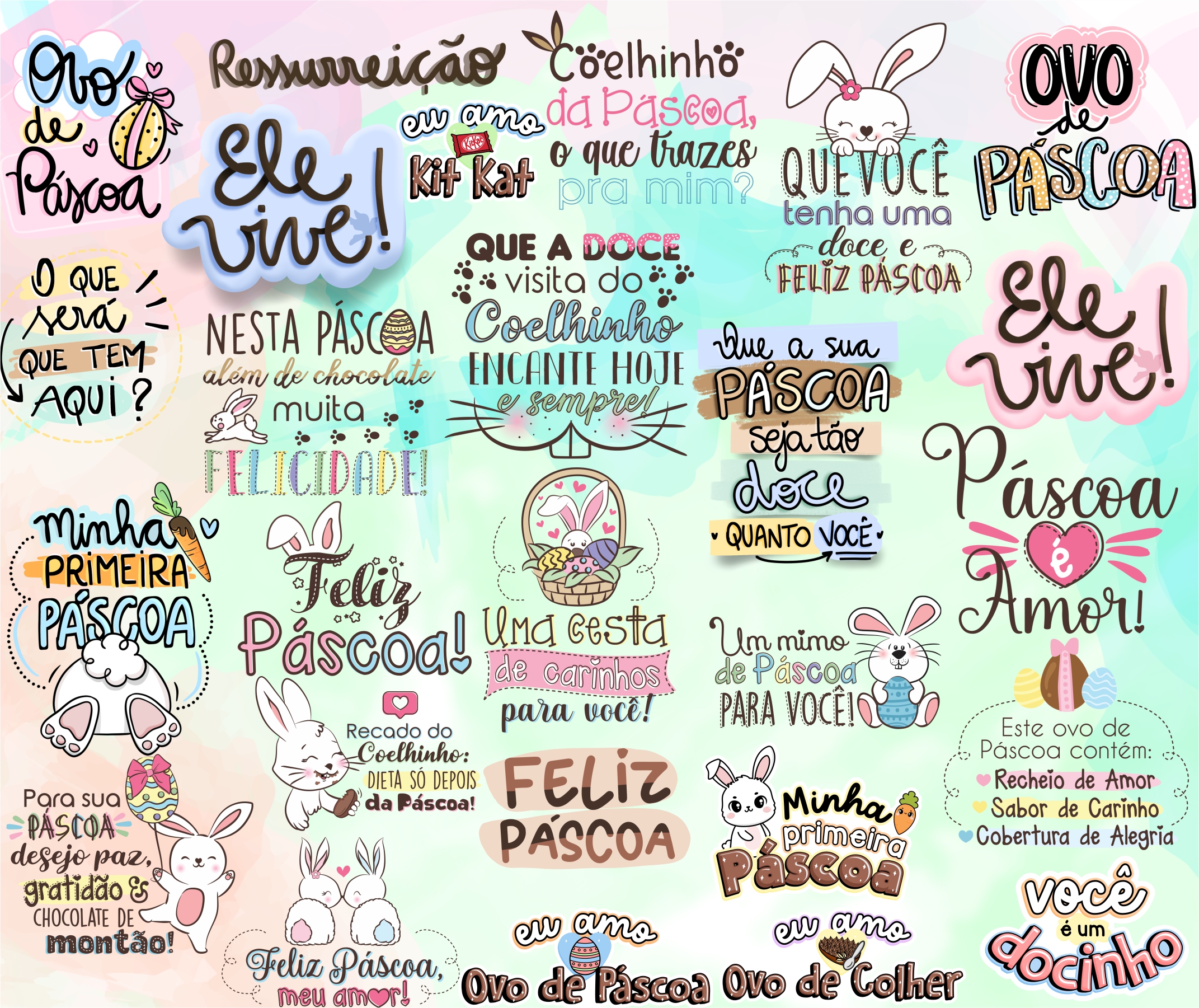 Kit Digital Lettering Frases Feliz Páscoa Arquivos sem fundo Png