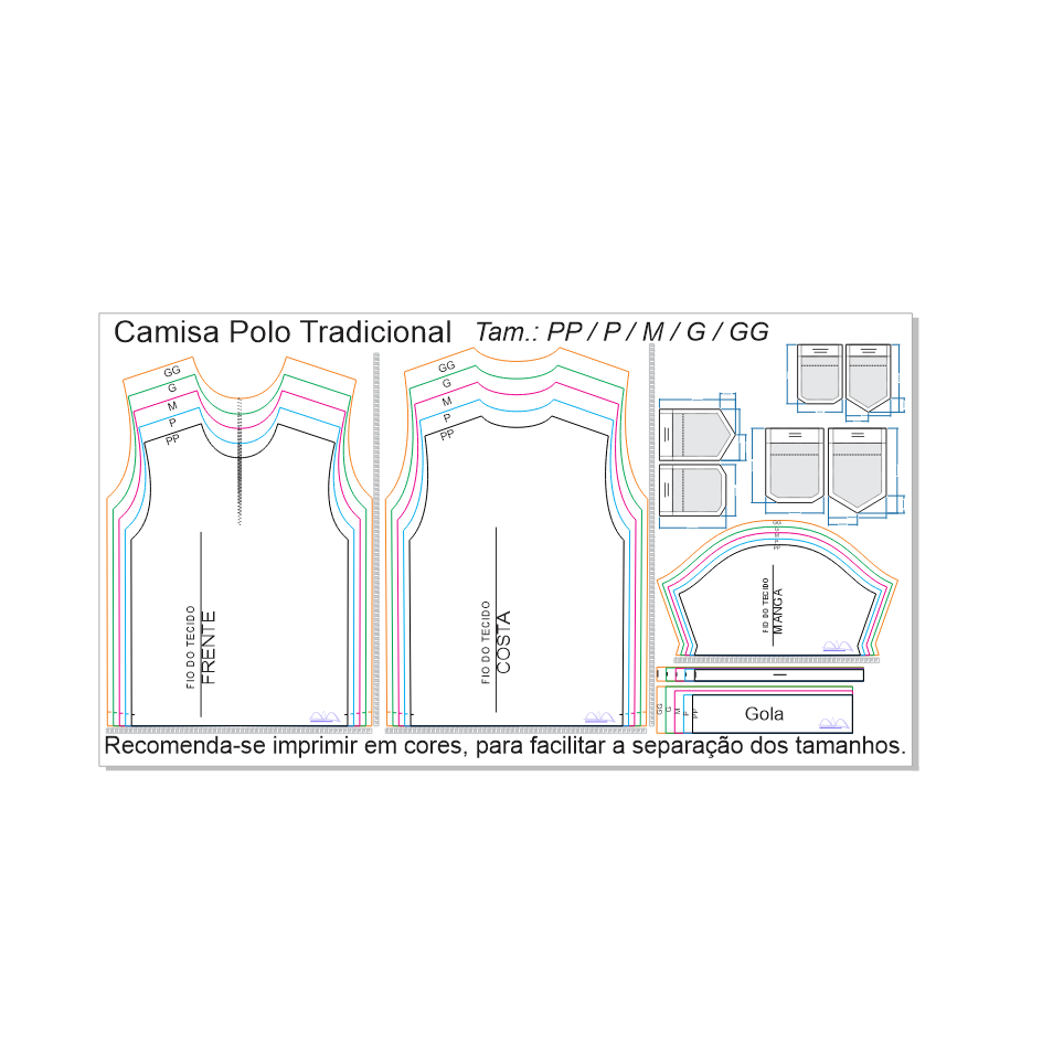 Molde Polo Tradicional (PP ao GG) Arquivo PDF + Editável