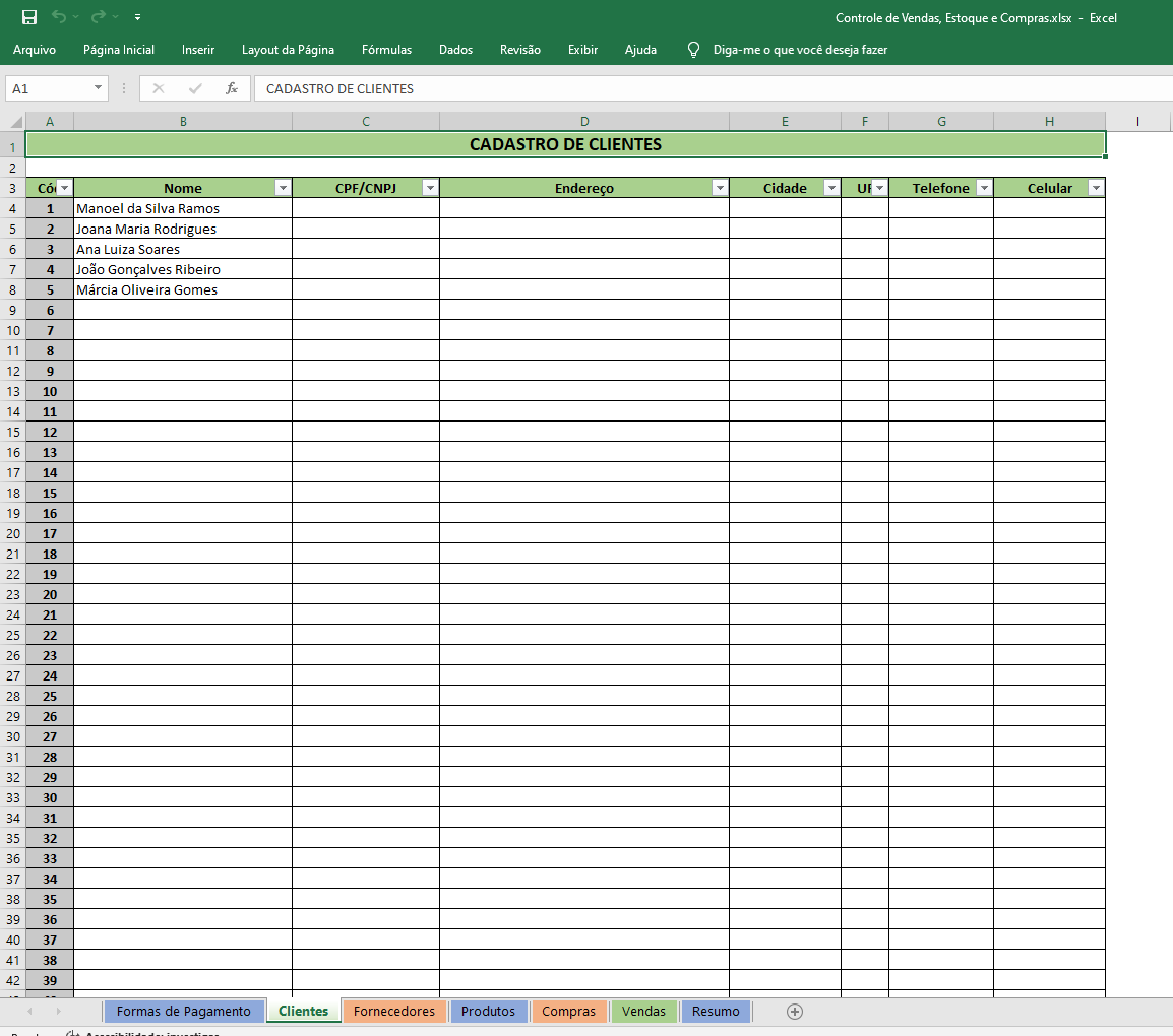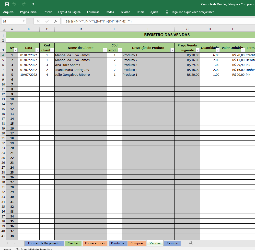 - Controle suas Vendas, Estoque e Compras de forma simples e prática através desta planilha.